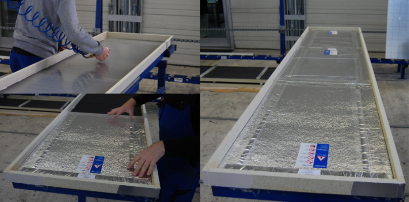 Am EEC wurden in Teilbereichen VIPs als hocheffiziente schlanke Dämmelemente verbaut. Zum Schutz der VIPs auf der Baustelle wurden diese bereits im Werk in eine neu entwickelte, robuste aber trotzdem wärmebrückenarme Blechumhüllung eingebaut und vor Ort in die Pfosten-Riegel Fassade integriert.